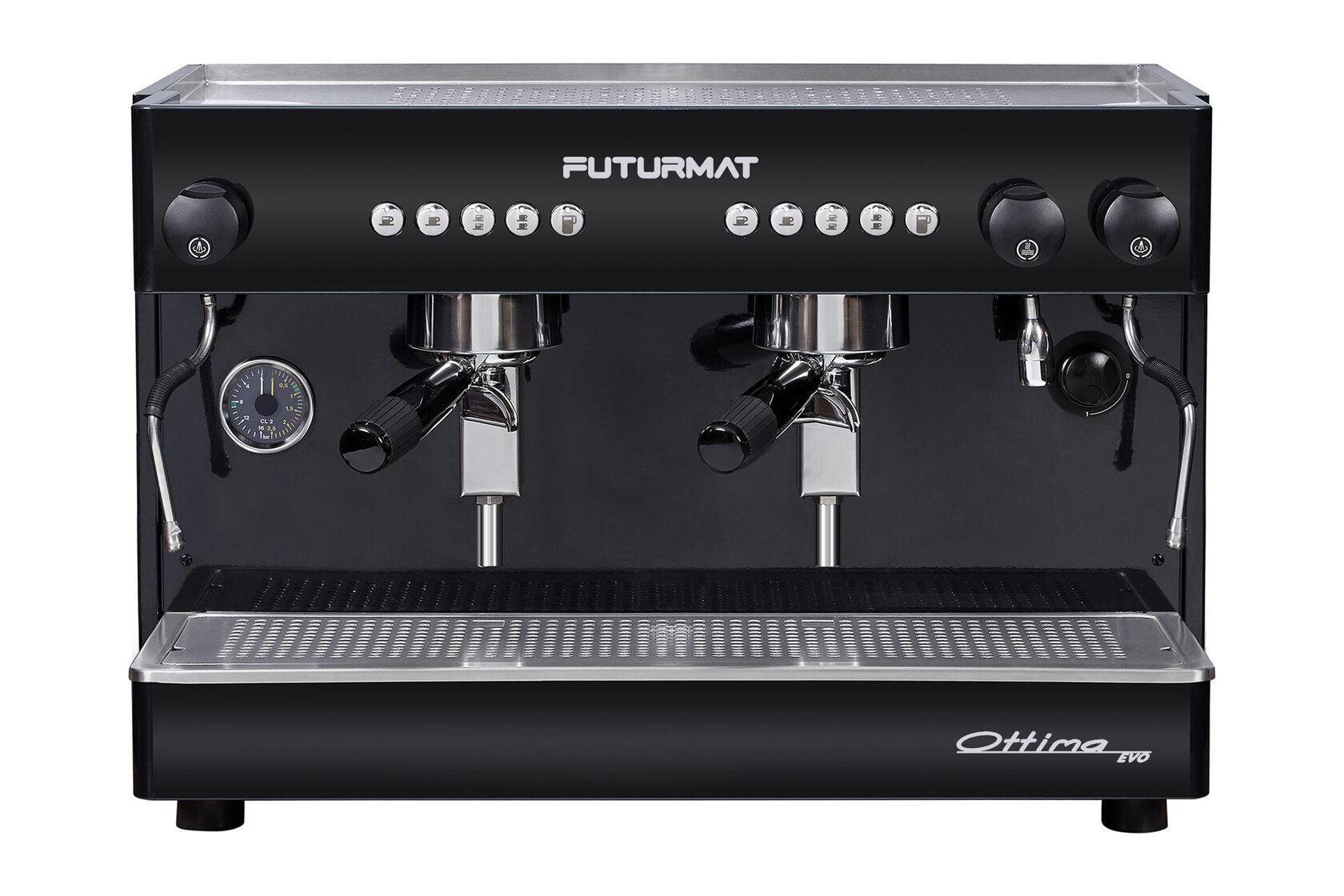 Широко известная и популярная Ottima в новом поколении получила не только автоматическую версию с пятью программируемыми кнопками и высокой группой, но и одногруппную машину с 5-литровым бойлером и полностью медным гидроконтуром. В это машине все трубки медные!